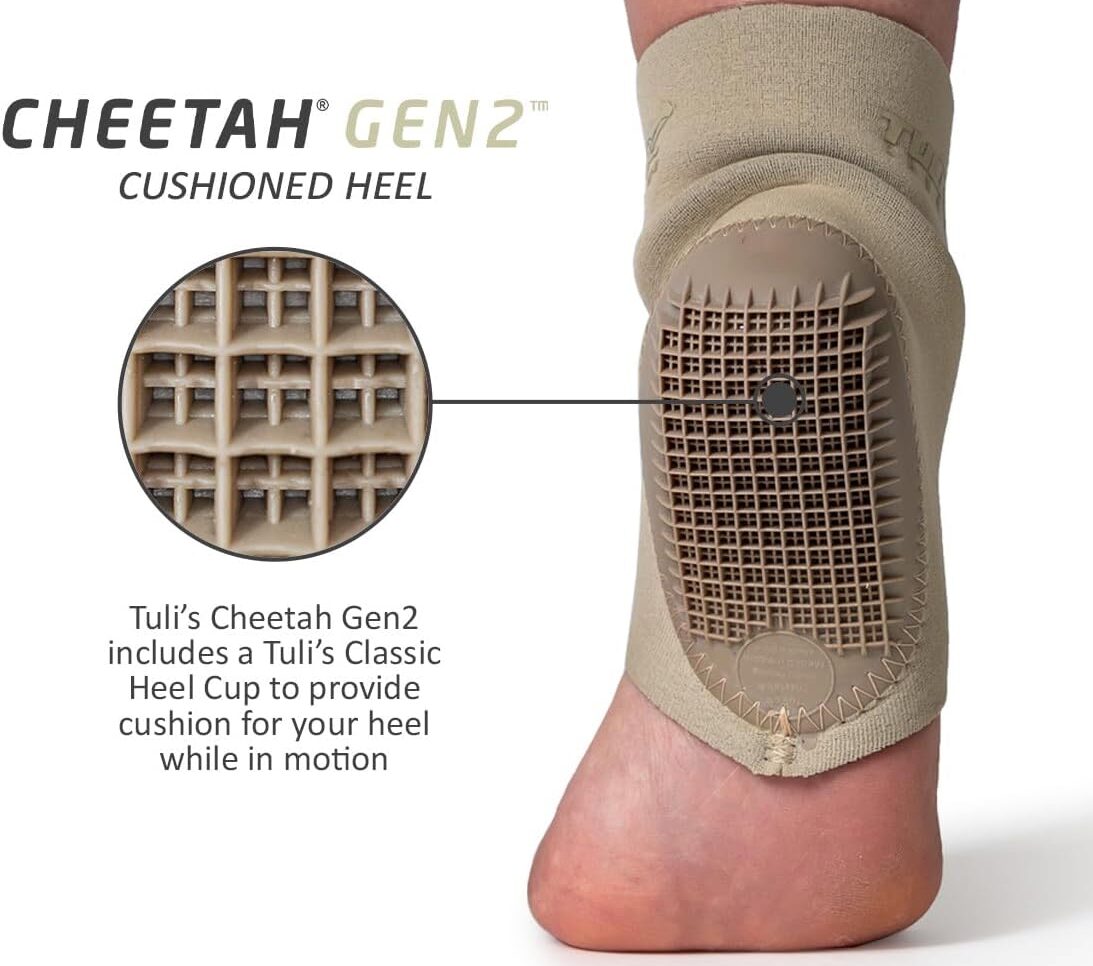 ✶SHOCK-ABSORPTION DESIGN – The Cheetah Gen2 delivers a dynamic combination of shock absorption from the multi-cell, multi-layer heel cup and comfortable reinforcement from the lightweight neoprene sleeve.