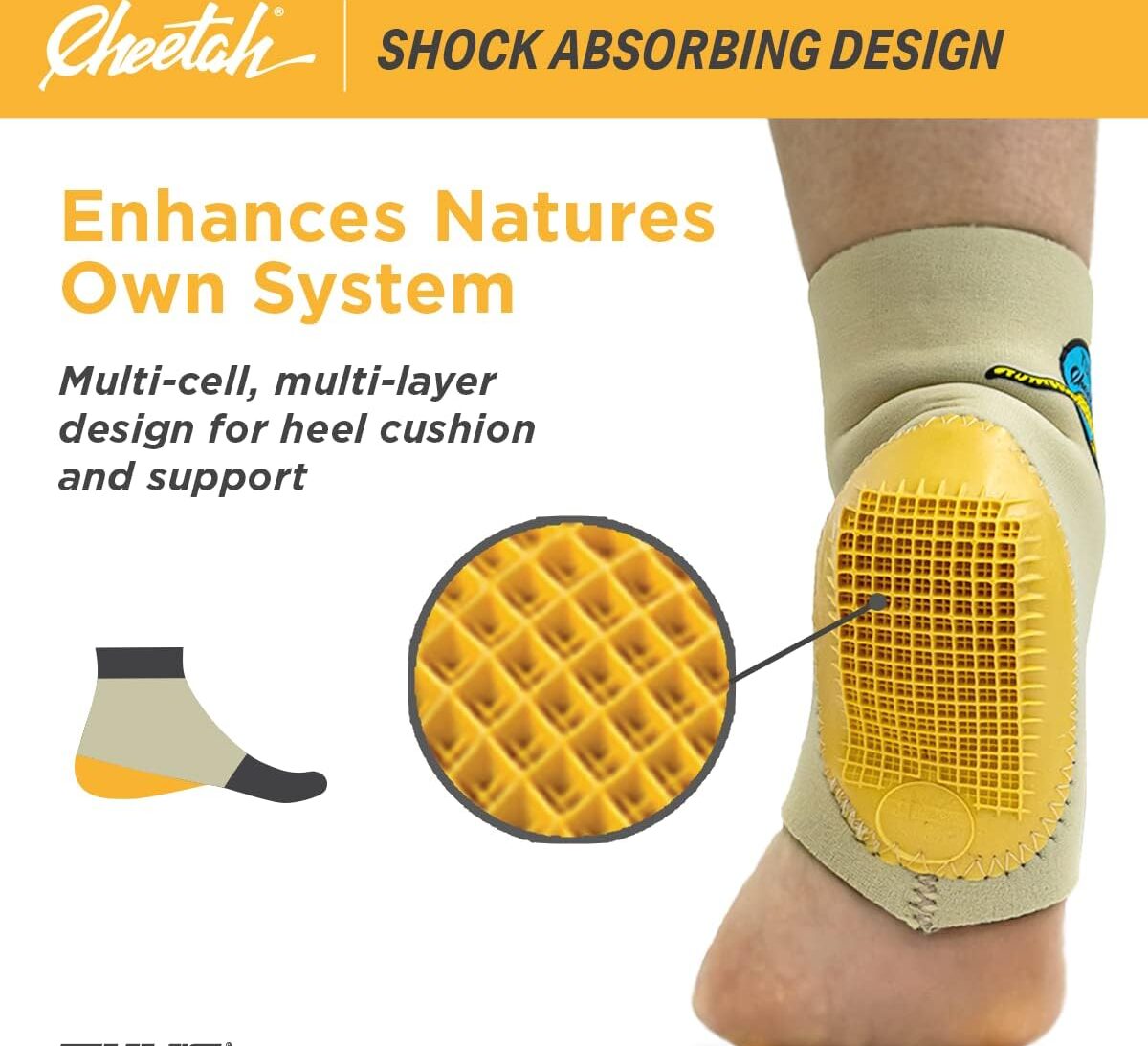 ✶SEVER’S DISEASE RELIEF – The Cheetah provides cushion and elevates the heel bone while providing evenly distributed compression to reduce heel pain caused by Sever’s Disease.